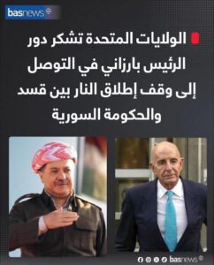 وقال الرئيس بارزاني في رسالته: "نرحّب بالاتفاق المبرم بين الحكومة السورية وقسد، وإذ نقدّم التهاني للطرفين، نعرب عن أملنا في...